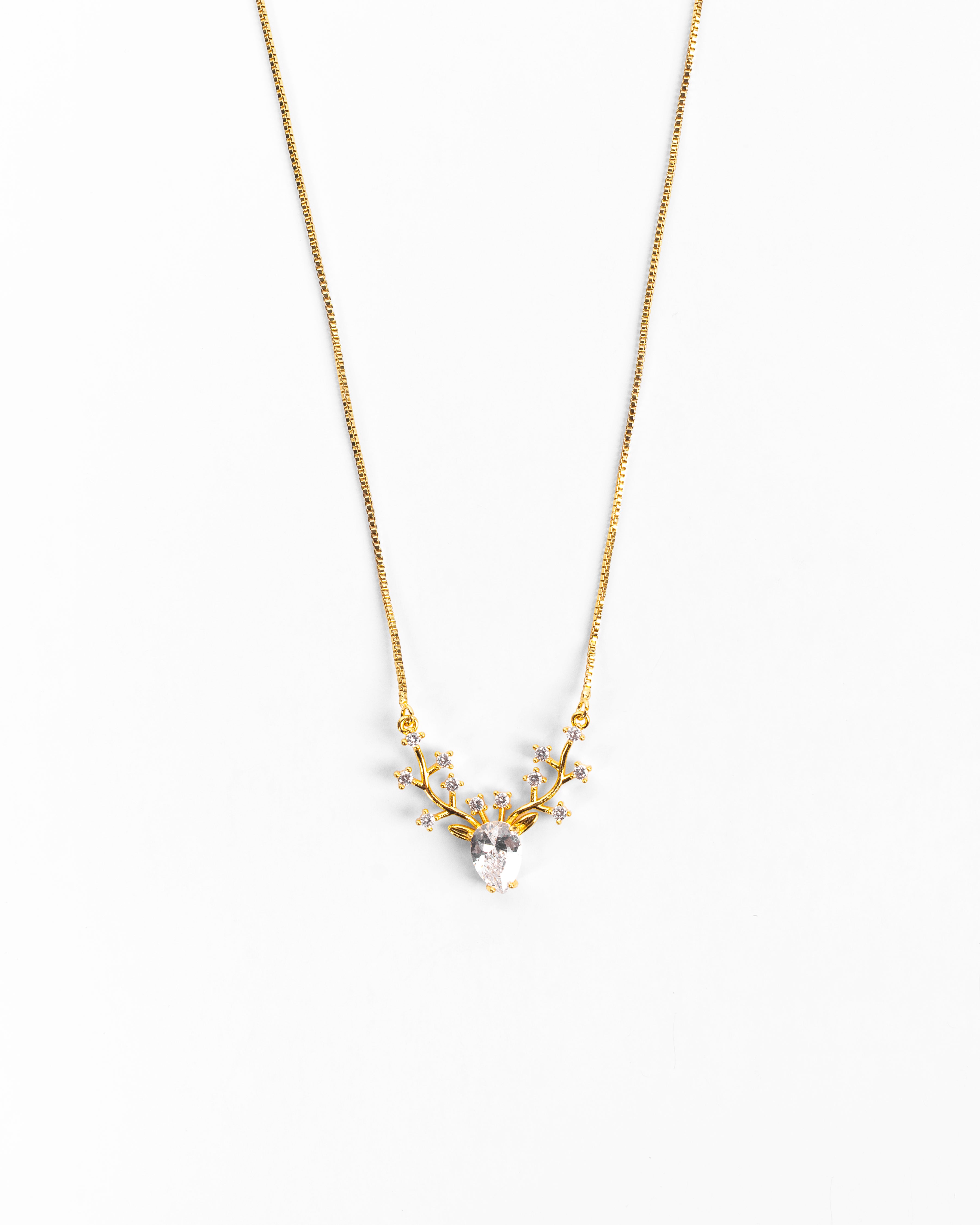 Collar de chapa de oro color dorado brillante con diseño de reno decorado con zirconia central en corte lágrima y detalles brillantes en las astas.